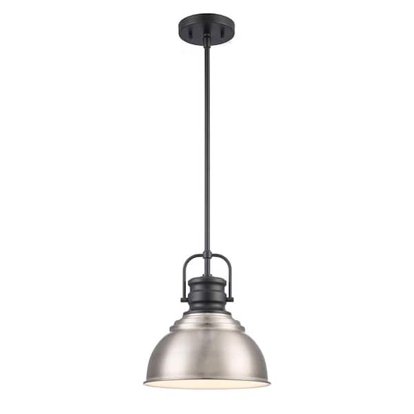 Shelston 10 in. 1-Light Brushed Nickel and Black Farmhouse Pendant Light Fixture with Metal Shade