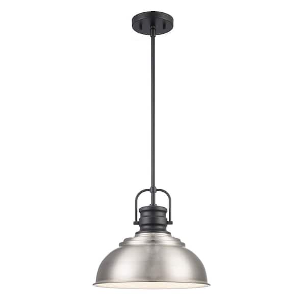 Shelston 13 in. 1-Light Brushed Nickel and Black Farmhouse Pendant Light Fixture with Metal Shade