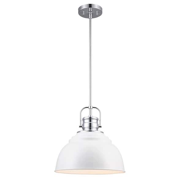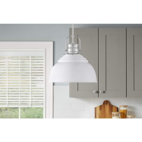 Shelston 13 in. 1-Light White and Chrome Farmhouse Pendant Light Fixture with Metal Shade