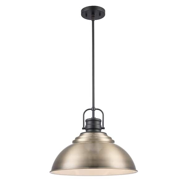 Shelston 16 in. 1-Light Antique Gold and Black Farmhouse Pendant Light Fixture with Metal Shade
