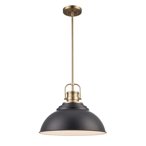 Shelston 16 in. 1-Light Black and Brass Farmhouse Pendant Light Fixture with Metal Shade