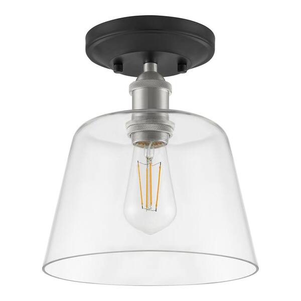 Sherman 1-Light Black Semi Flush Mount with Nickel Accents and Clear Glass