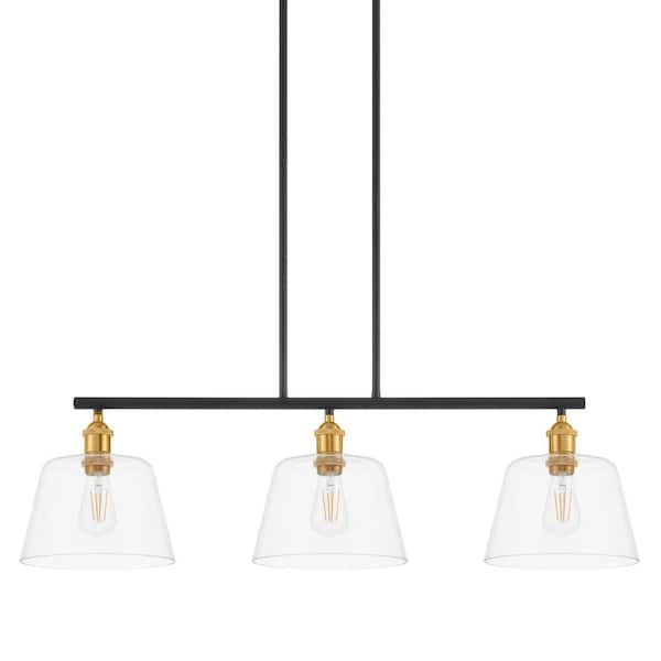 Sherman 3-Light Black Linear Island Pendant with Aged Brass Accents