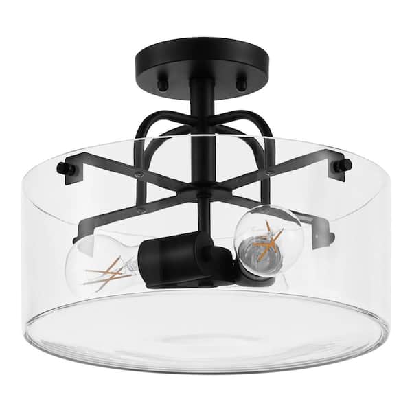 Shirwell 13.5 in. 3-Light Matte Black Round Semi-Flush Mount, Modern Ceiling Light with Clear Glass Drum Shade