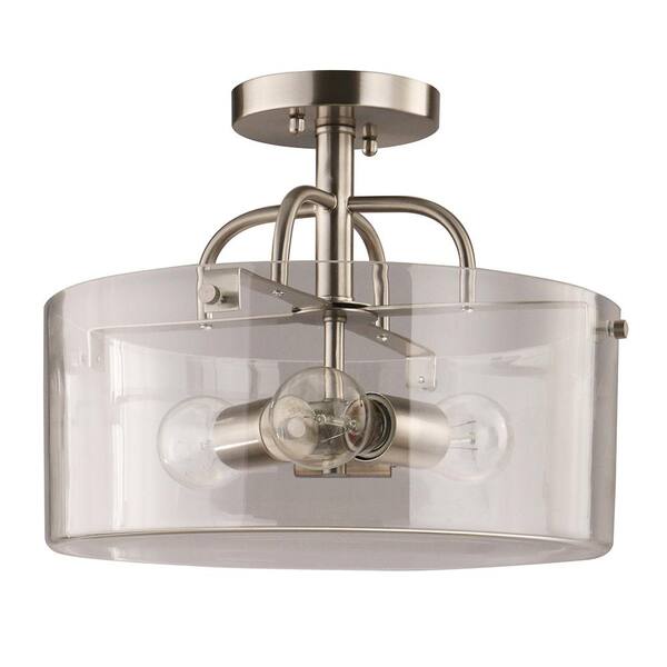 Shirwell 3-Light Brushed Nickel Semi-Flush Mount with Clear Glass Shade