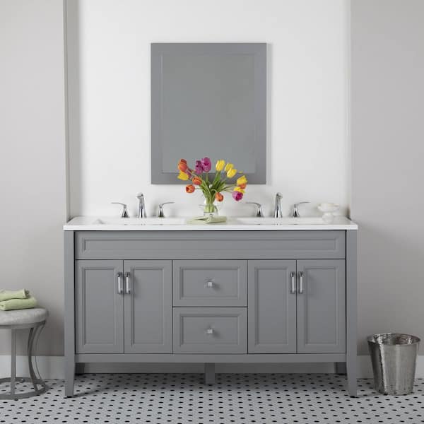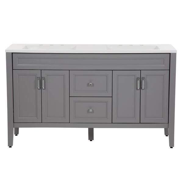 Skylark 61 in. Double Sink Sterling Gray Bath Vanity with White Cultured Marble Top (Assembled)