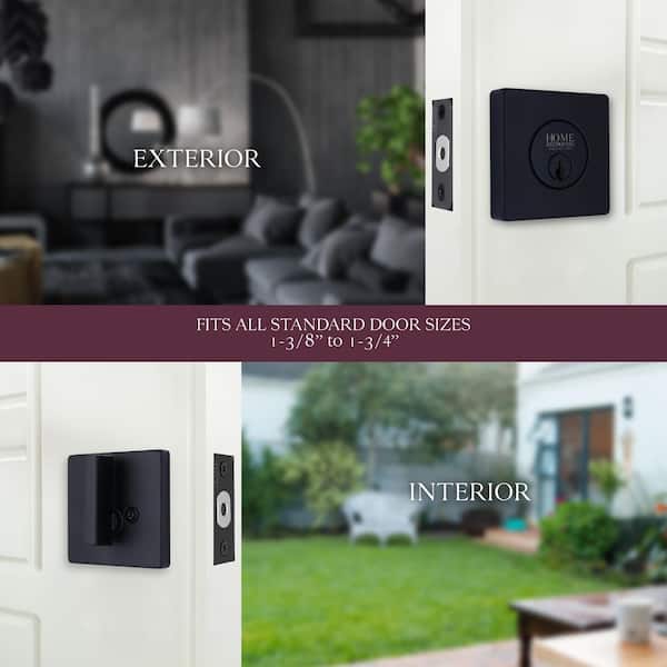 Square Matte Black Single Cylinder Deadbolt Featuring Dual Keyway
