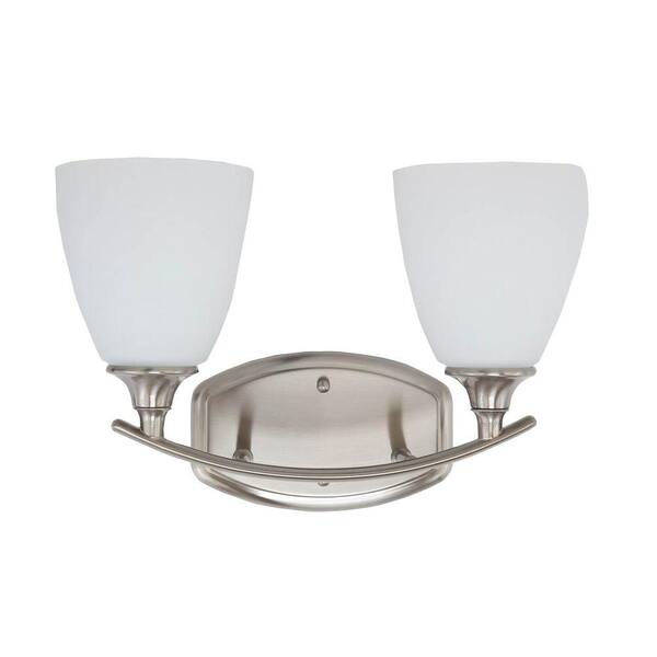 Stansbury Collection 14-1/2 in. 2-Light Brushed Nickel Traditional Bathroom Vanity Light with Glass Shades