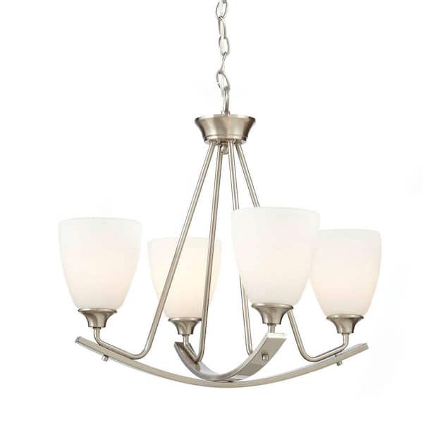 Stansbury Collection 22 in. 4-Light Brushed Nickel Chandelier with Etched Hammered Glass Shades