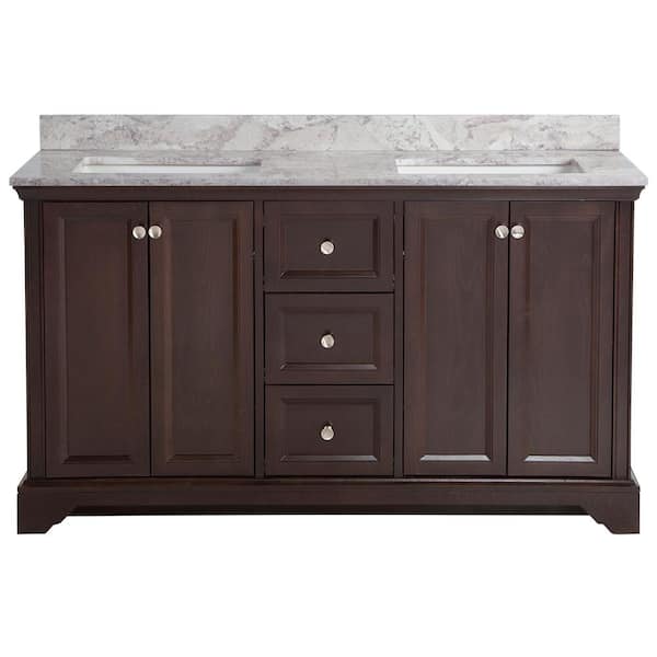 Stratfield 61 in. Double Sink Chocolate Bath Vanity with Winter Mist Cultured Marble Top (Assembled)