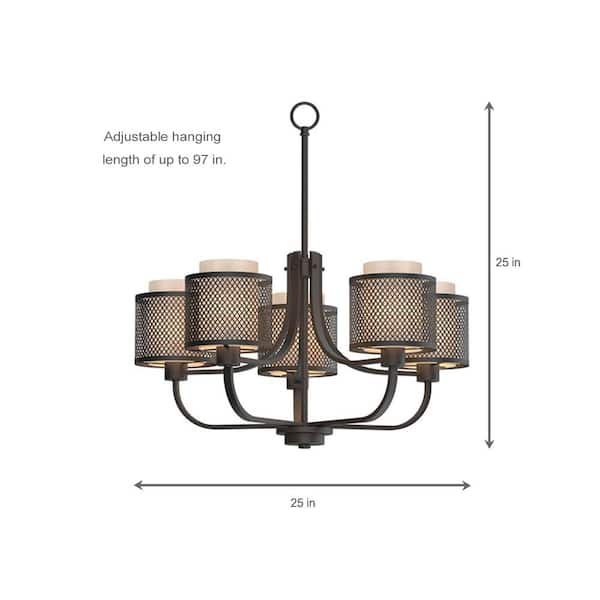 Summit Collection 5-Light Bronze Mesh Chandelier with Inner Cream Fabric Shade