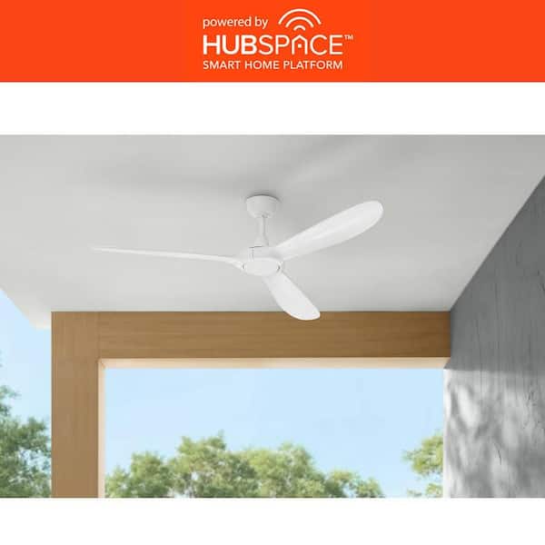 Tager 60 in. Smart Indoor/Outdoor Matte White Ceiling Fan without Light with Remote Powered by Hubspace