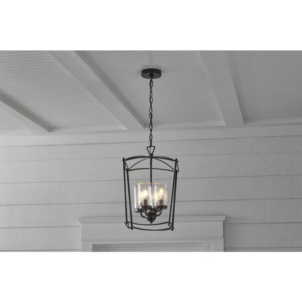 Tercero 4-Light Matte Black Outdoor Foyer Pendant Light with Textured Glass Shades