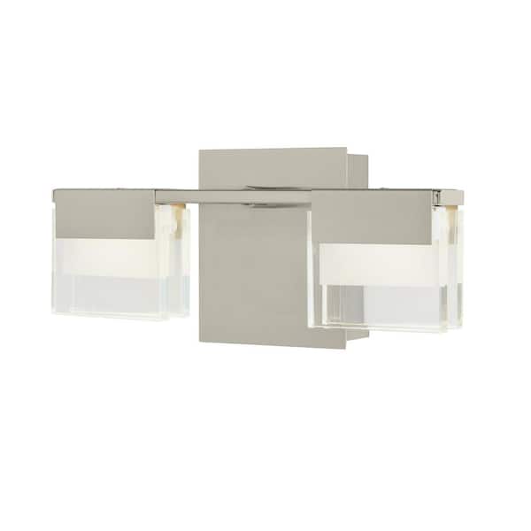 VICINO 12.61 in. W x 5.71 in. H 2-Light Brushed Nickel Integrated LED Bathroom Vanity Light with Rectangular Shades