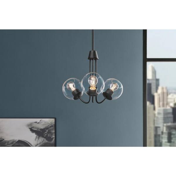 Vista Heights 3-Light Matte Black Shaded Chandelier with Clear Glass Globes