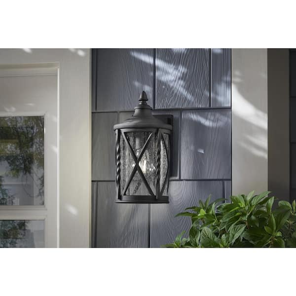 Walcott Manor 11.5 in. 1-Light Black Transitional Hardwired Outdoor Wall Light Lantern Sconce with Clear Seeded Glass