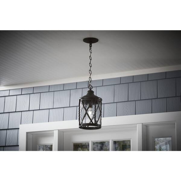 Walcott Manor 14.12 in. 1-Light Antique Bronze Transitional Outdoor Hanging Light Pendant Light with Clear Seeded Glass