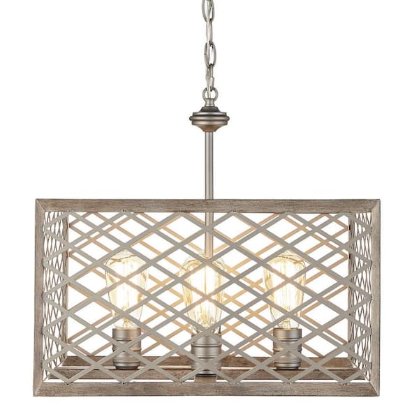 Wallace Manor Collection 4-Light Gilded Pewter Pendant with Interweaving Open Cage Frame