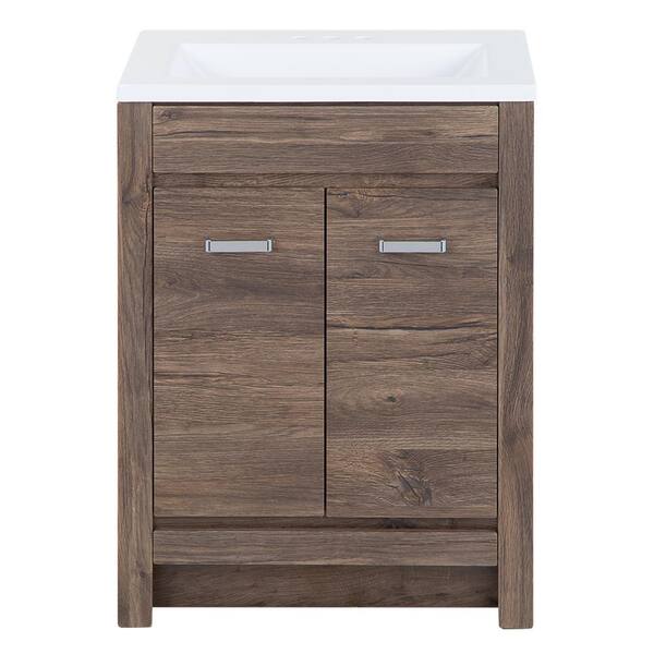 Warford 25 in. Single Sink Vintage Oak Bath Vanity with White Cultured Marble Top (Assembled)