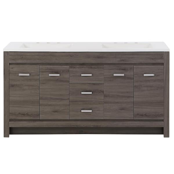 Warford 60 in. W x 19 in. D x 33 in. H Double Sink Freestanding Bath Vanity in Dark Oak with White Cultured Marble Top