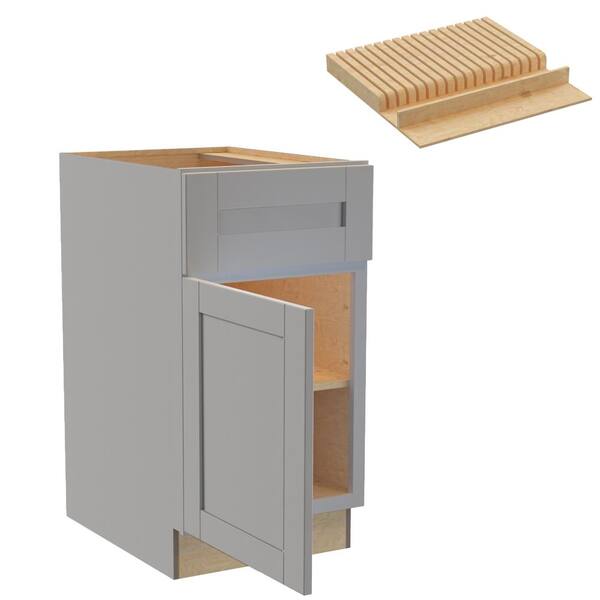 Washington 18 in. W x 24 in. D x 34.5 in. H Veiled Gray Plywood Shaker Assembled Base Kitchen Cabinet Left Knife Block