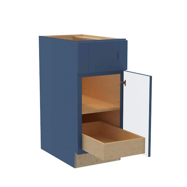Washington Vessel Blue Plywood Shaker Assembled Base Kitchen Cabinet FH 1 ROT Sft Cls R 15 in W x 24 in D x 34.5 in H