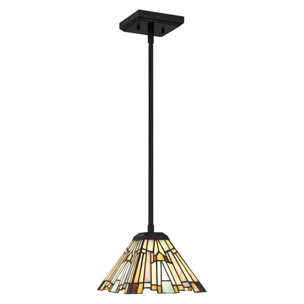Waterville 1-Light Matte Black Mini Pendant with Tiffany Glass Shade