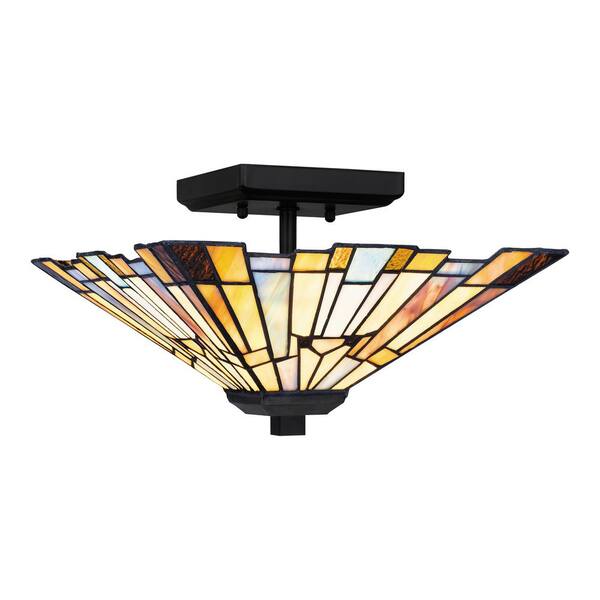 Waterville 12 in. 2-Light Matte Black Tiffany Semi-Flush Mount
