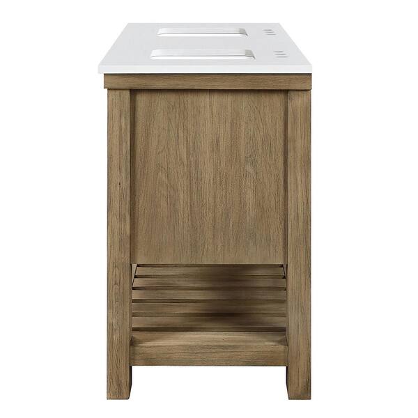 Weathersby 61 in. Double Sink Bleached Pine Bath Vanity with White Quartz Top (Assembled)