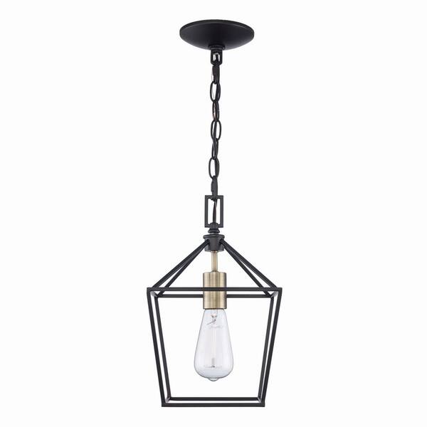 Weyburn 1-Light Black and Gold Farmhouse Mini Pendant Light Fixture with Caged Metal Shade