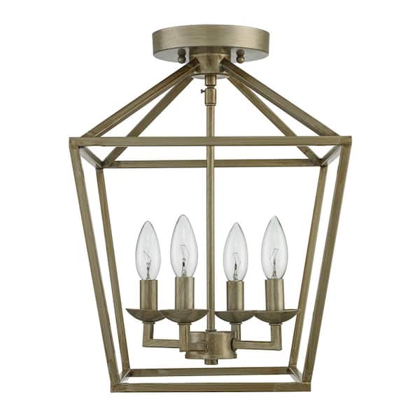 Weyburn 16.5 in. 4-Light Antique Silver Leaf Farmhouse Semi-Flush Mount Ceiling Light Fixture with Caged Metal Shade