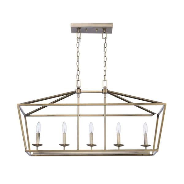 Weyburn 36 in. 5-Light Brushed Brass Farmhouse Linear Chandelier Light Fixture with Caged Metal Shade