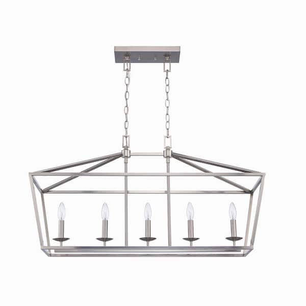 Weyburn 36 in. 5-Light Brushed Nickel Farmhouse Linear Chandelier Light Fixture with Caged Metal Shade