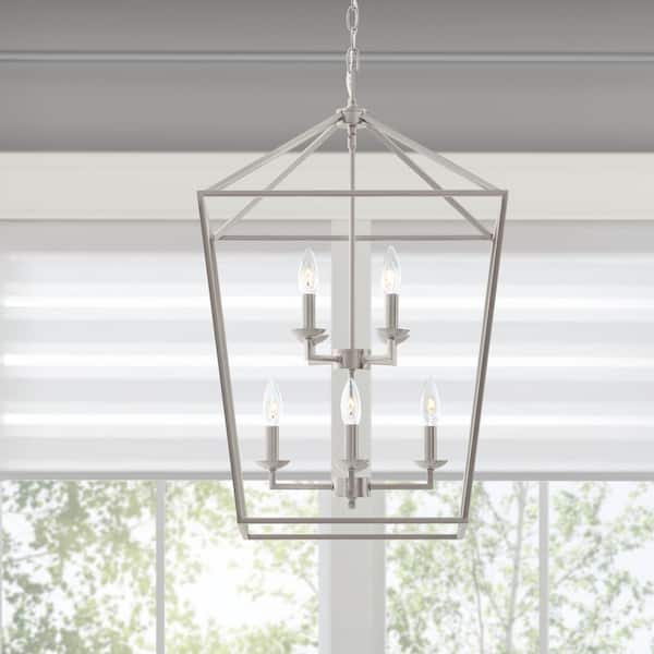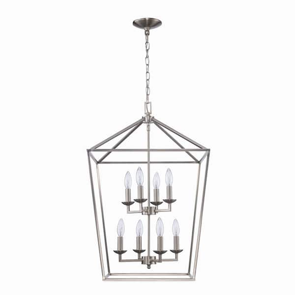 Weyburn 8-Light Brushed Nickel Farmhouse Chandelier Light Fixture with Caged Metal Shade