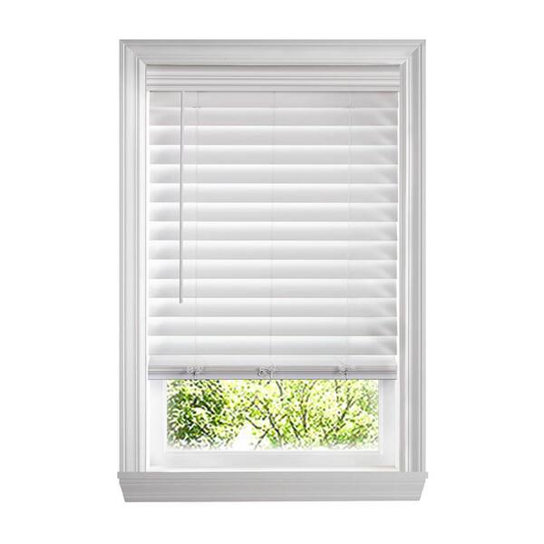 White Cordless Premium Faux Wood Blind/Shade with 2.5 in. Slats-26.25 in. W x 64 in. L (Actual 25.75 in. W x 64 in. L)
