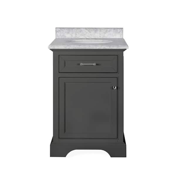 Windlowe 24 in. Single Sink Gray Bath Vanity with White Carrara Marble Top (Assembled)