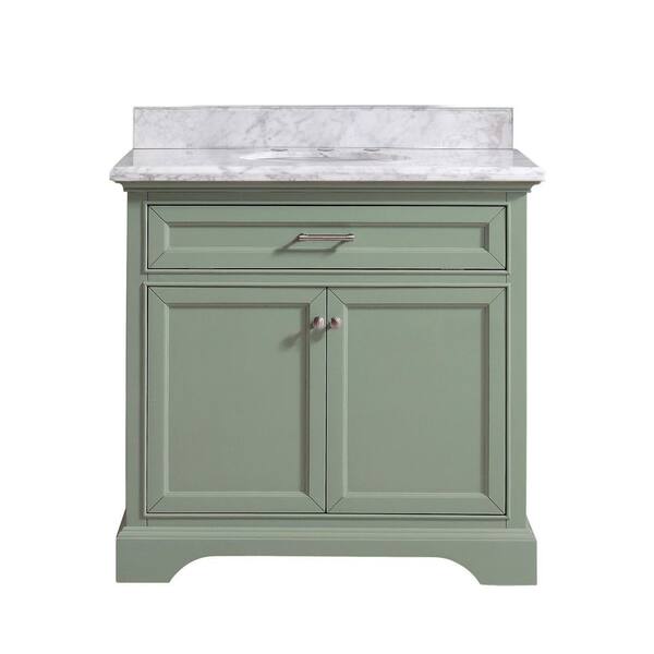 Windlowe 37 in. Single Sink Green Bath Vanity with White Carrara Marble Top (Assembled)