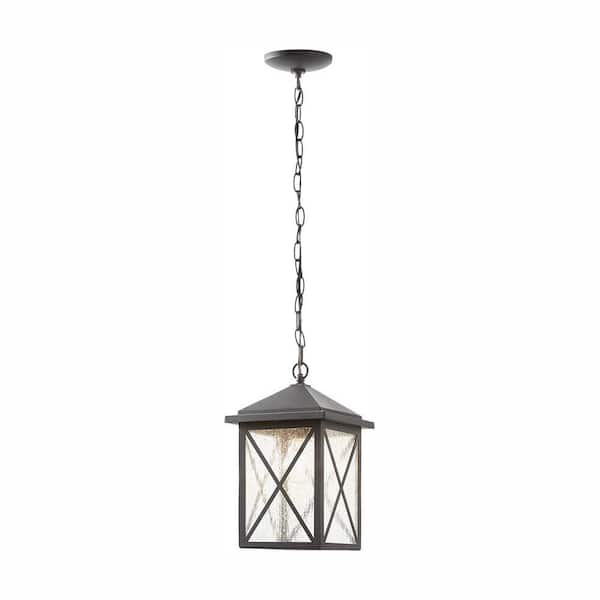 Wythe 1-Light Black Outdoor Hanging Pendant Light Fixture with Seeded Glass