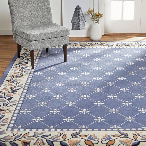 Premium Aydin Blue/Ivory 9 ft. x 12 ft. Geometric Area Rug
