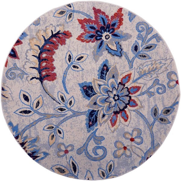 Tremont Ivory/Navy Blue 5 ft. Round Floral Area Rug