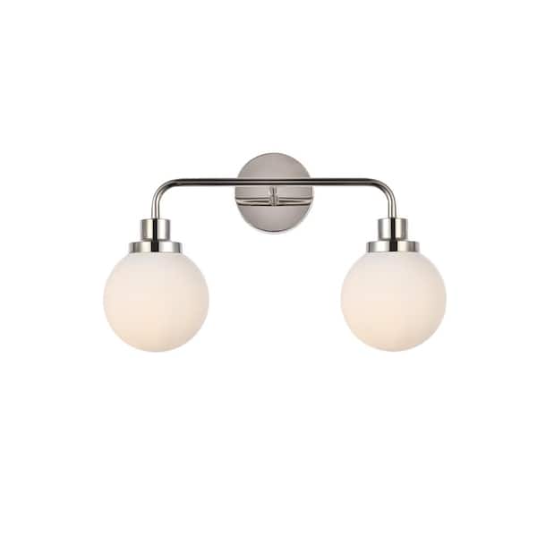 Home Living 19 in. 2-Light Polished Nickel Vanity Light with Glass Shade