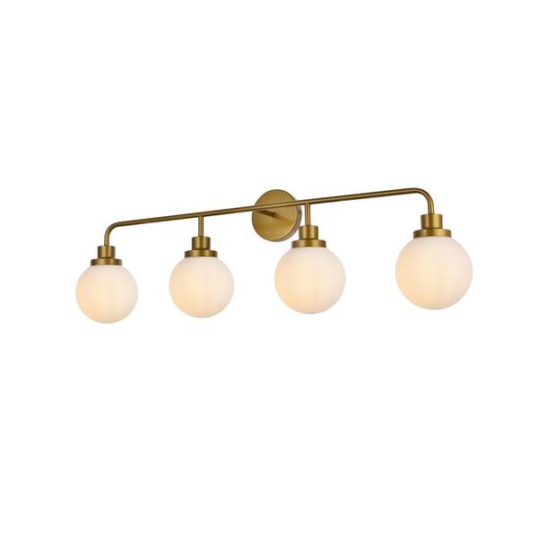 Home Living 37.5 in. 4-Light Brass Vanity Light with Glass Shade