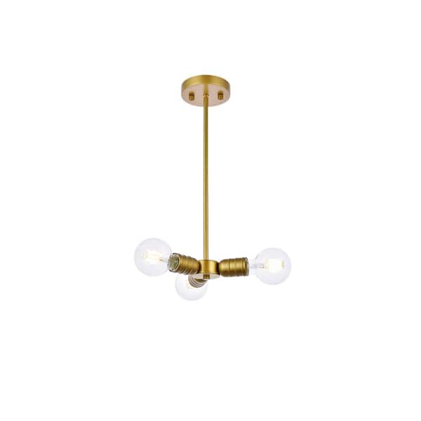 Home Living 40-Watt 3 Light Brass Pendant Light with No Shade, No Bulbs Included