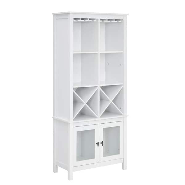 Home Source Jill Zarin White Bar Cabinet Bookshelf with Glass Doors