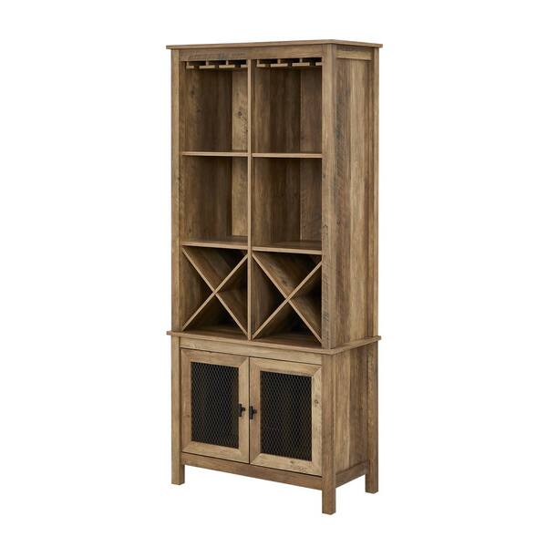 Home Source Reclaimed Barnwood Bar Cabinet Bookshelf with Wire Mesh Doors