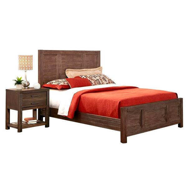 Barnside Queen-Size Bed and Nightstand (2-Piece) Set in Aged Finish