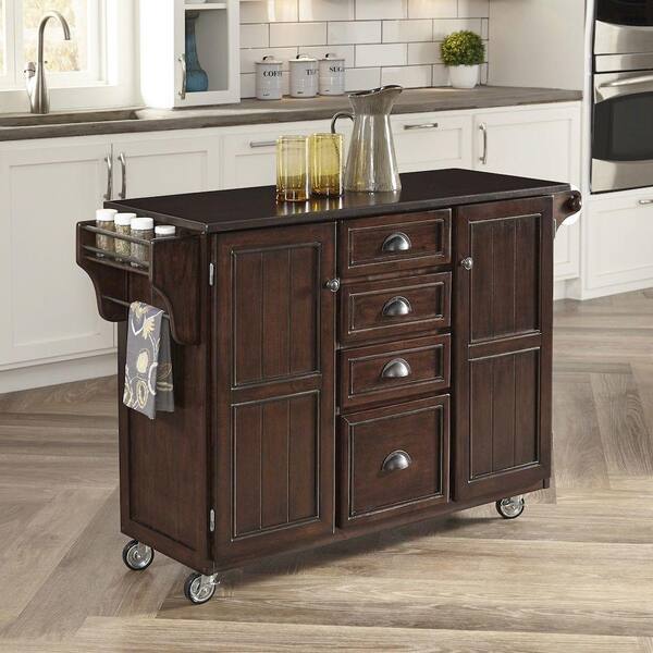 Country Comfort Aged Bourbon Kitchen Cart With Wood Top
