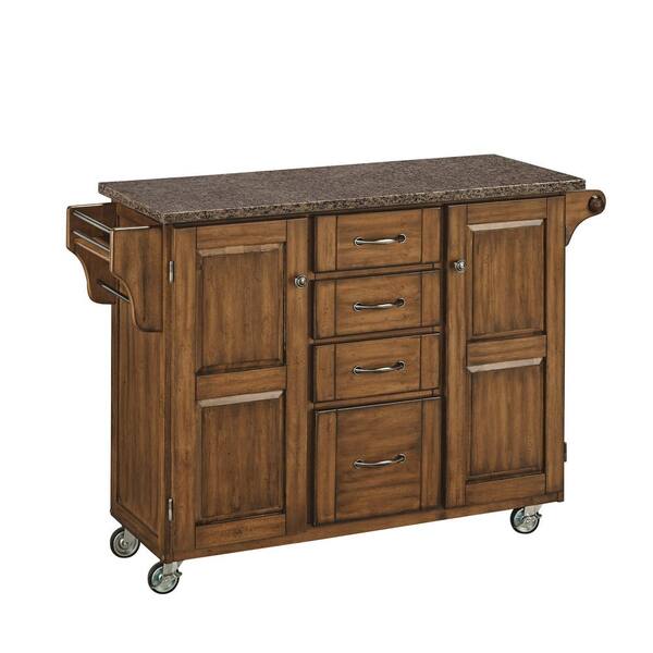 Create-a-Cart Warm Oak Kitchen Cart With Quartz Top