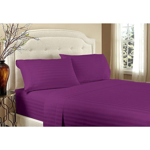 Home Sweet Home 1800 Luxurious Hotel Extra Soft Deep Pocket Stripe Sheet Set (Full, Purple)