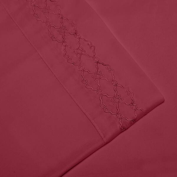 Home Sweet Home Extra Soft Deep Pocket Embroidered Luxury Bed Sheet Set - Full, Burgundy